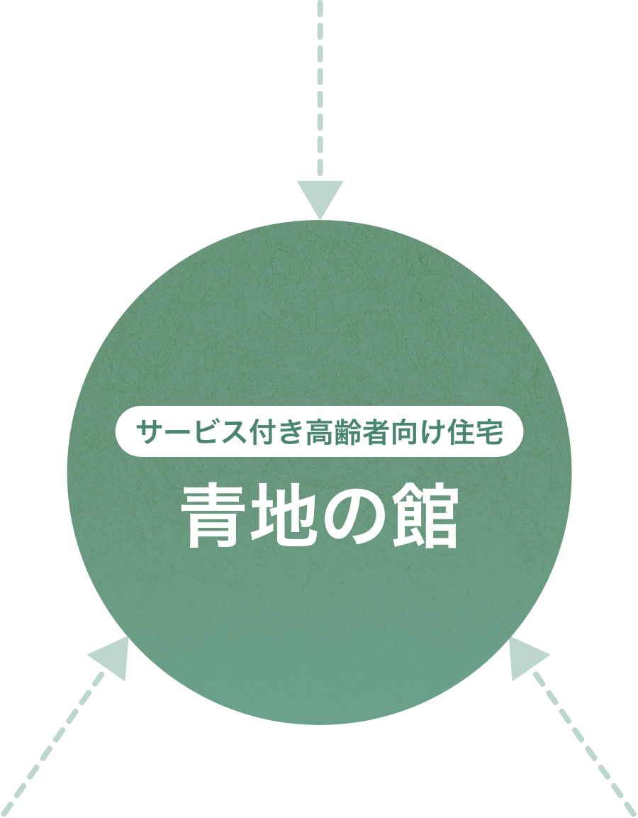 『青地の館』の医療サポートは、訪問診療を中心とした医療サポート。訪問看護も含 めて地域の方々との連携で皆様の『安心』をサポートします。